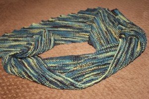 The cowl will go in the Drawer of Advanced Planning. The scarf will shortly be a birthday gift. It’s just a simple garter stitch. The cowl was worked in the round until I ran out of yarn.